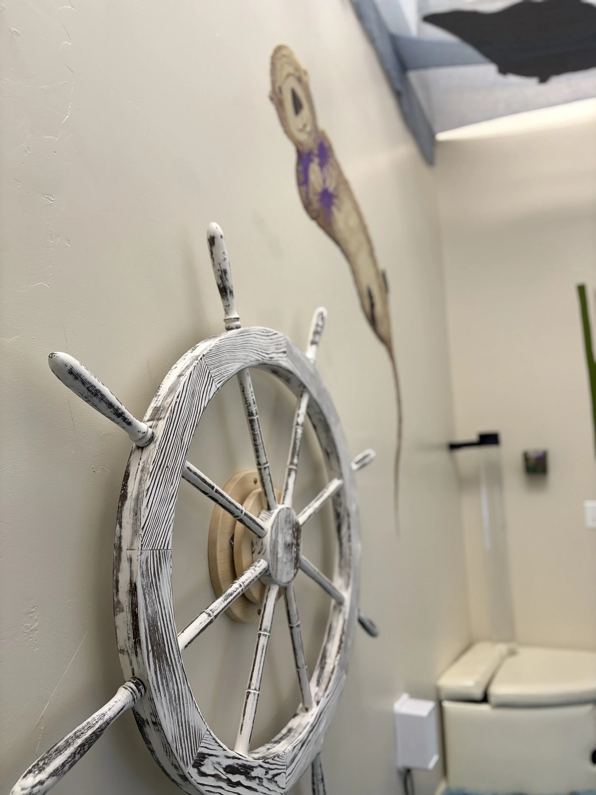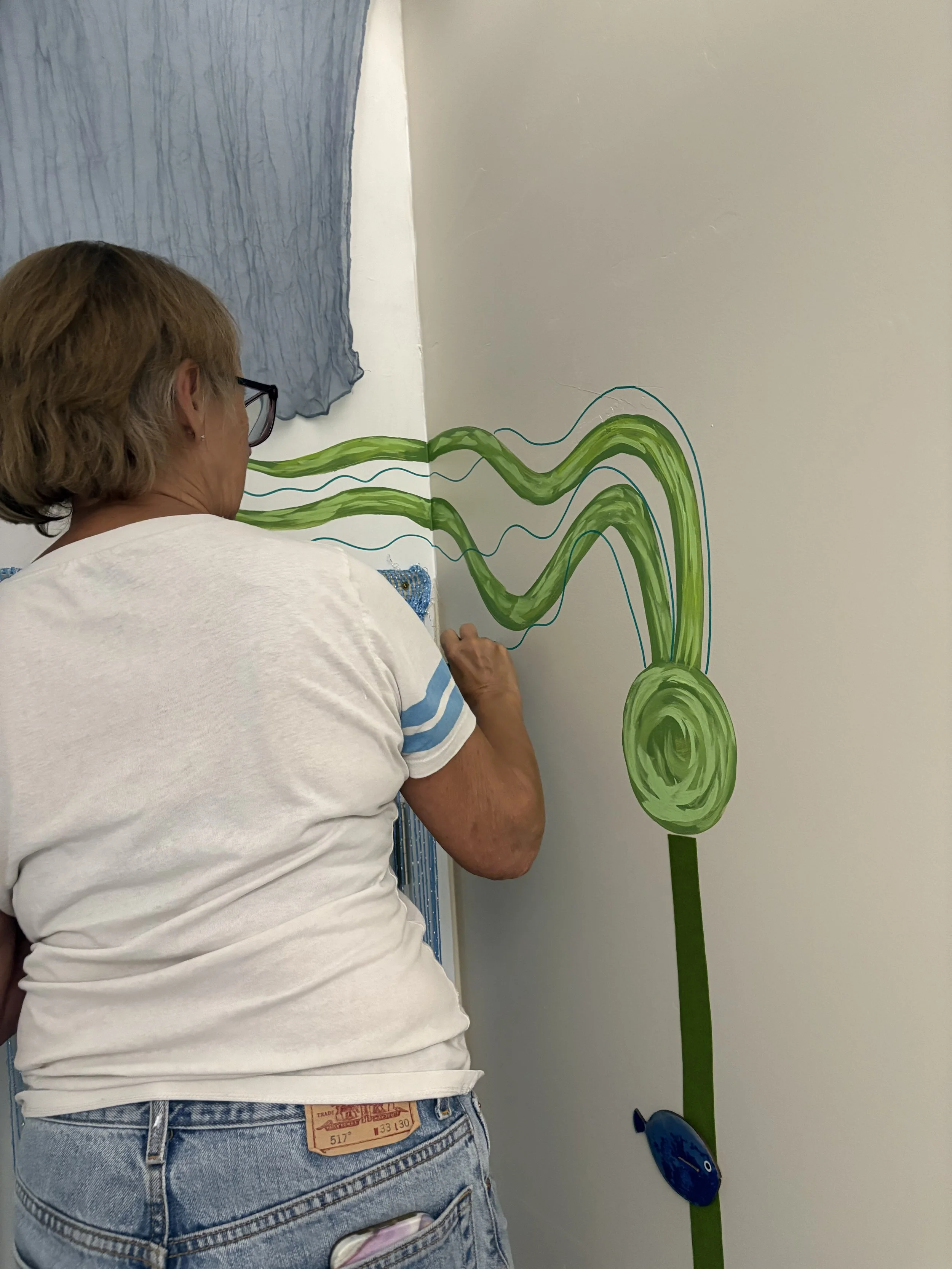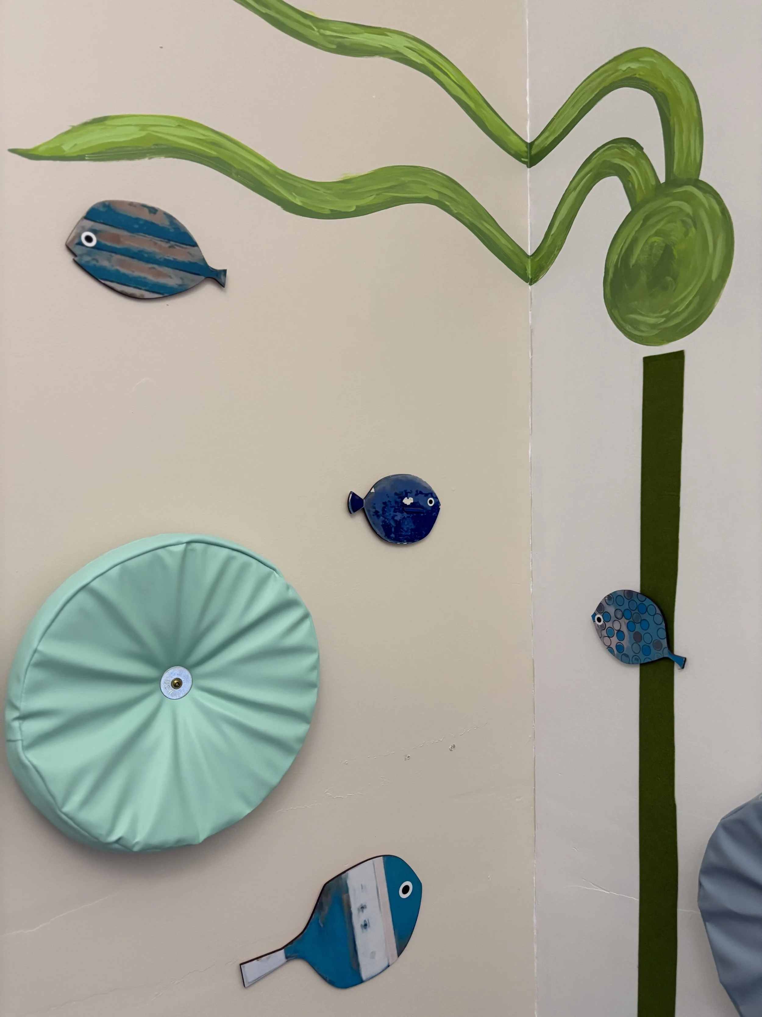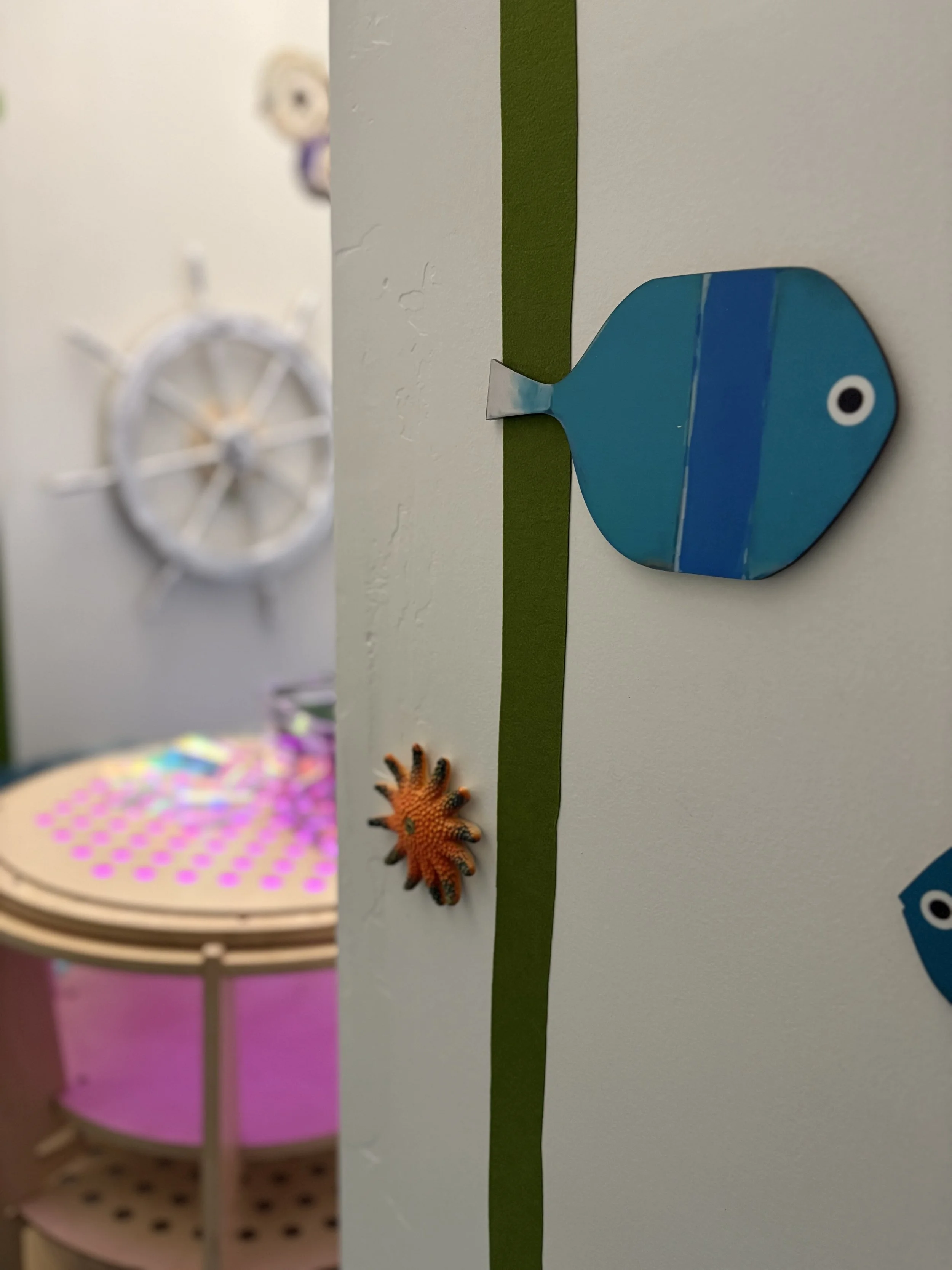 Her mural, a joyful depiction of a sea otter enjoying some tasty purple sea urchins amidst soft kelp and ocean bubbles, now graces the wall of our sensory room welcoming children and adults alike into a space of calm, wonder, and connection.