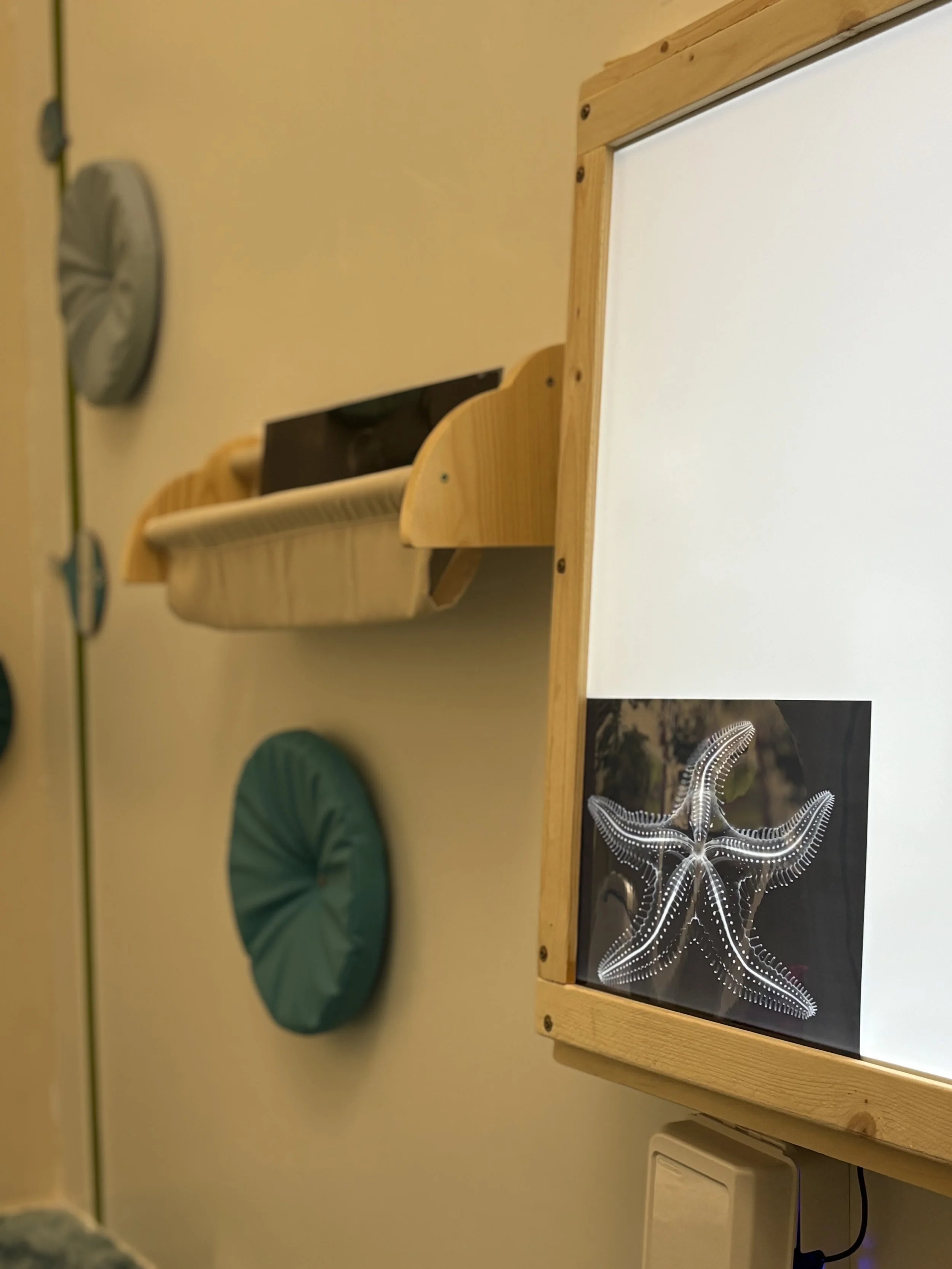 Designed as a sanctuary for individuals with developmental disabilities, sensory sensitivities, anxiety, or trauma, the Purple Urchin Room uses multisensory, ocean-themed elements to create a gentle, stimulating environment where guests can explore and regulate their bodies and emotions at their own pace.
